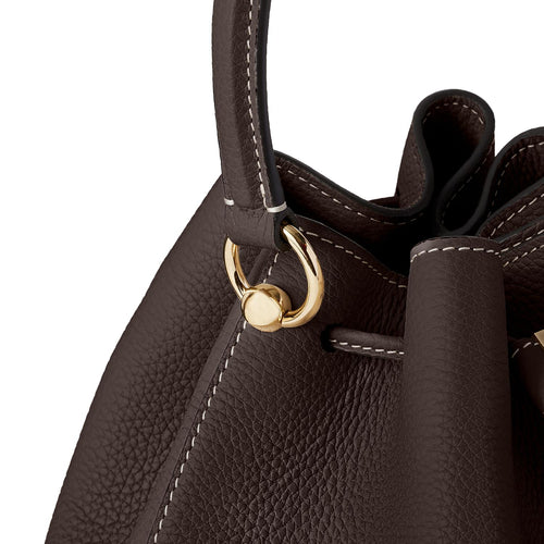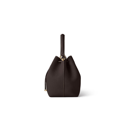 - The soft form created by closing the drawstring is finished with a square-shaped bottom for a sophisticated look.
