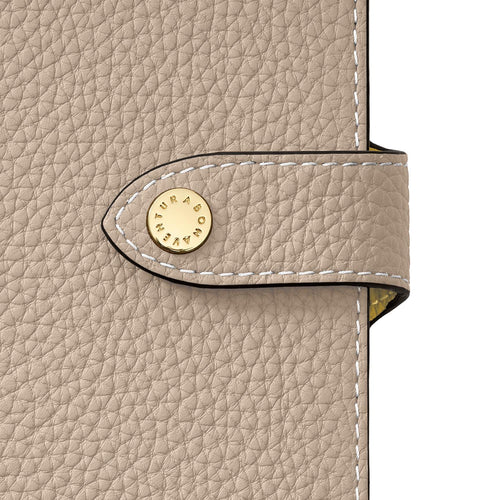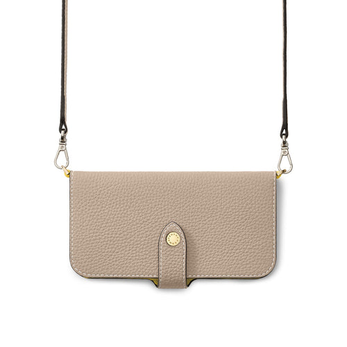 柔らかな手触りと美しいシボ感が魅力のレザー。キズや汚れが目立ちにくく、日常使いにも最適です。 -
