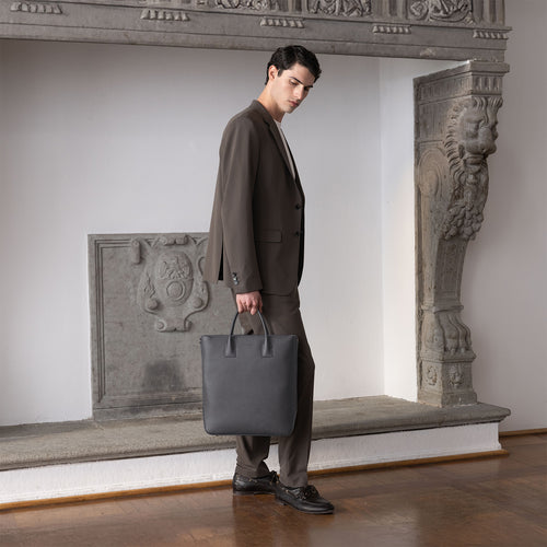 - 上質なシュリンクレザーを片面に一枚贅沢に使用した、高級感あふれるトートバッグ。