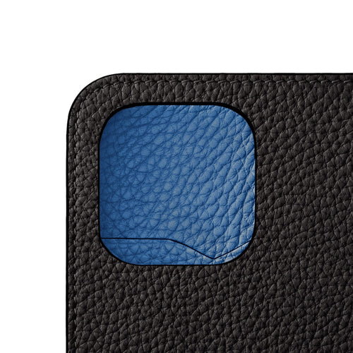 SKU: BODT15PM-BKBL - Specifications: Genuine leather notebook type smartphone case, card pocket (horizontal x 4, vertical x 2)