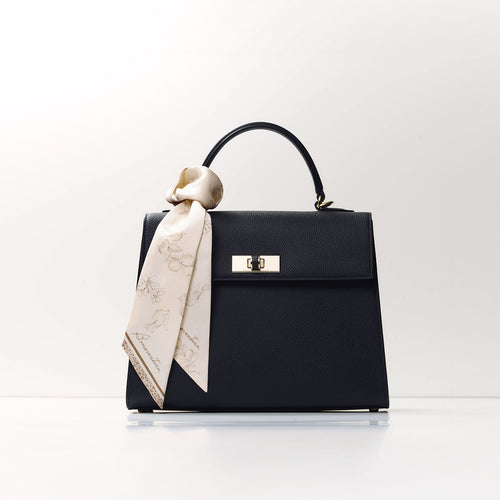 - スカーフ素材には、国産の上質なシルクを100%使用。シルクならではの控えめな艶と軽やかな手触りが特徴で、バッグハンドルはもちろん、首元やヘアアレンジにも活躍する万能な一本です。