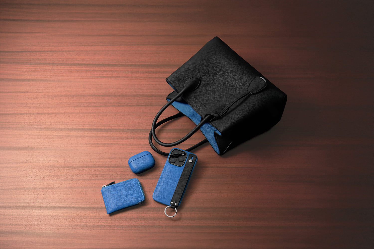 表と裏で異なるレザーを使用し、バイカラーで楽しめるデザインに。日々のコーディネートや気分に合わせて、自由なスタイリングが楽しめます。 -