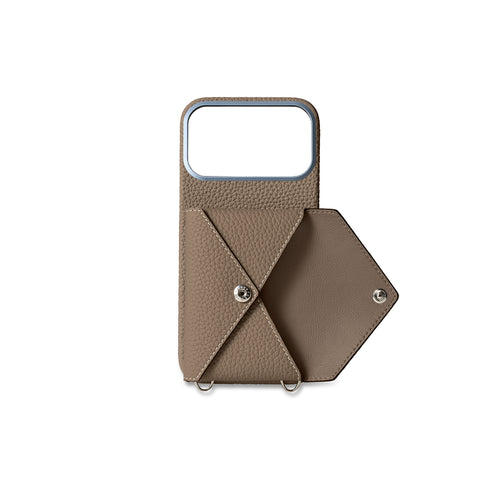 - 別売りのエンベロープポーチ、ミラーポーチ専用のスナップ付き背面型iPhoneケース。