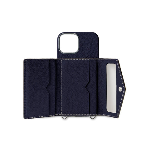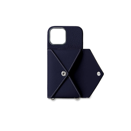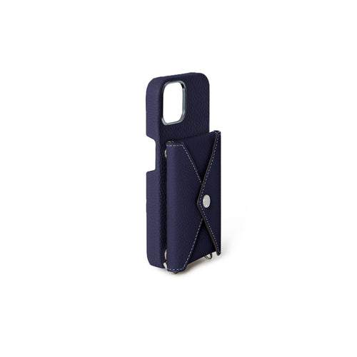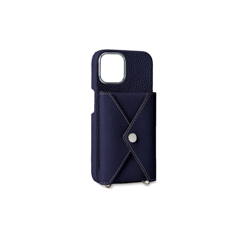 - Back-type iPhone case with snap for envelope pouch and mirror pouch (sold separately).