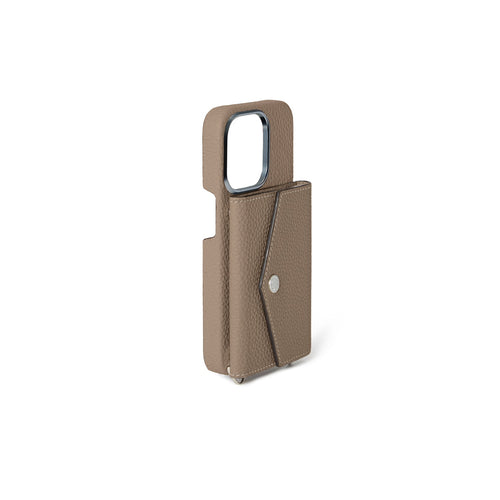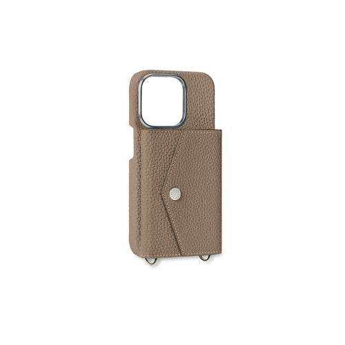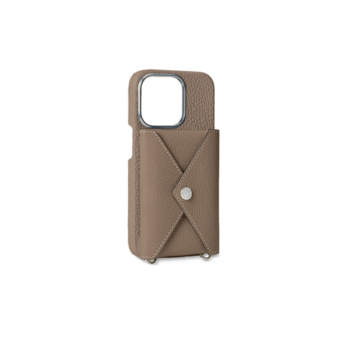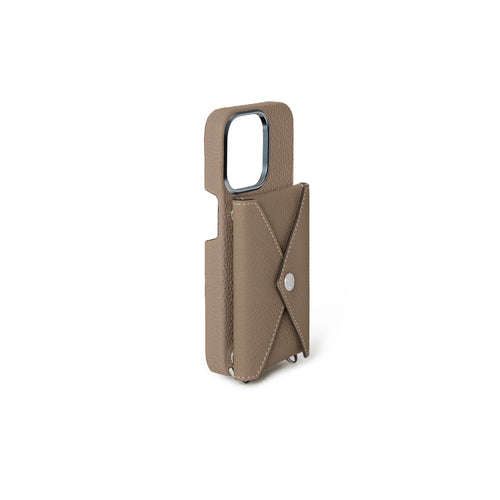 - Back-type iPhone case with snap for envelope pouch and mirror pouch (sold separately).