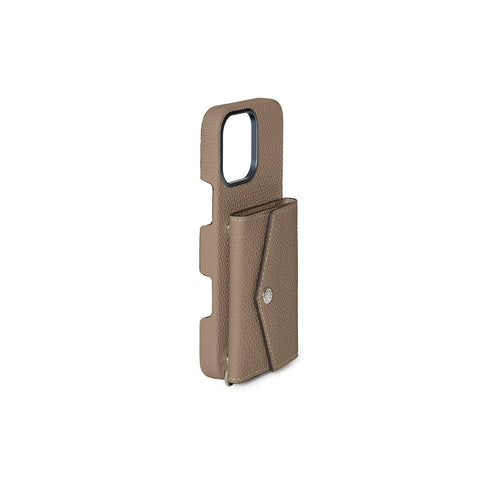 - Back-type iPhone case with snap for envelope pouch and mirror pouch (sold separately).