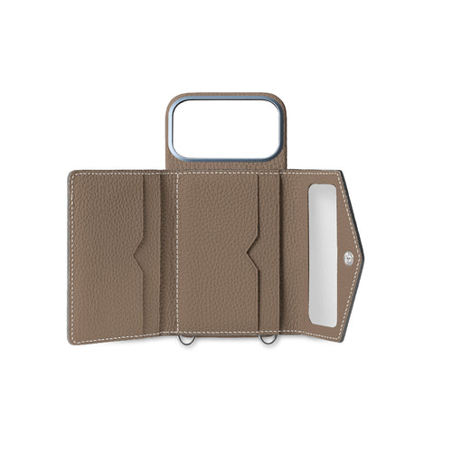 - 別売りのエンベロープポーチ、ミラーポーチ専用のスナップ付き背面型iPhoneケース。