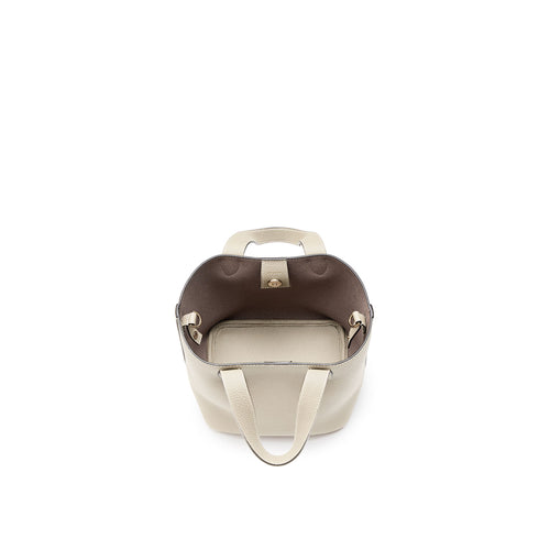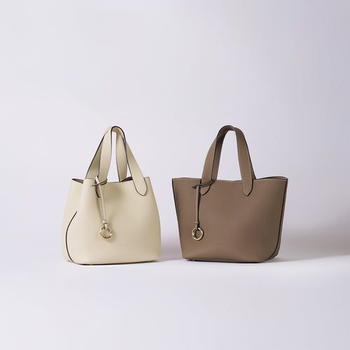 - 軽量で心地よいシュリンクレザーの風合いと、トレンドに左右されないシンプルなフォルムが特徴的なハンドバッグ。