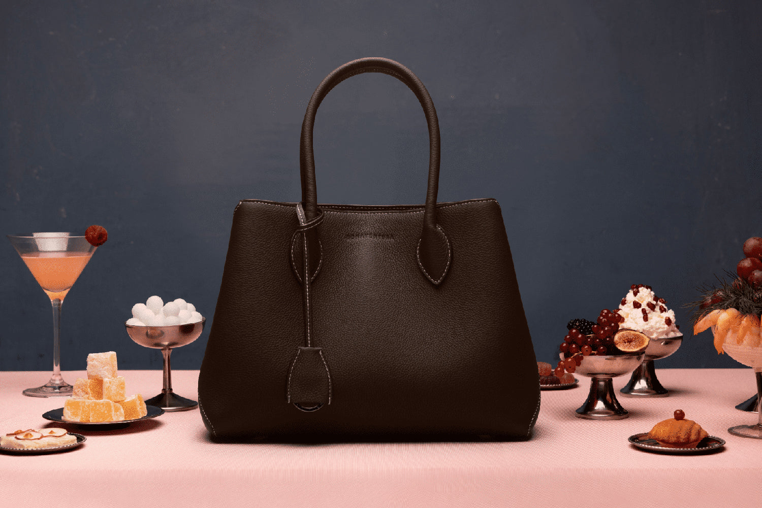 直線と曲線が織りなすデザインに、上品さと凛とした強さを映し出しました。素材には、"高貴"を意味する「ノービレレザー」を採用。