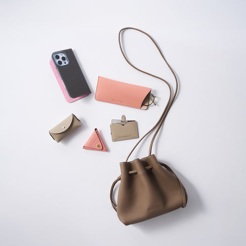 驚くほどしなやかなシュリンクレザーを活かし、ボナベンチュラだからこそ実現できた巾着バッグ。