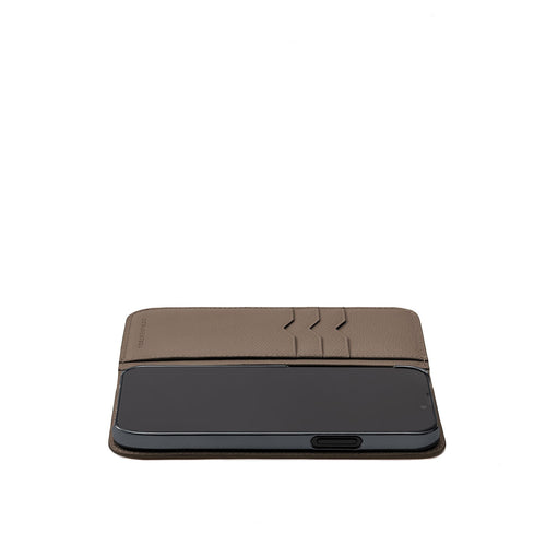 - 美しいレザーを引き立てるミニマルなデザインのiPhoneケース。
