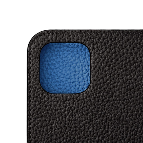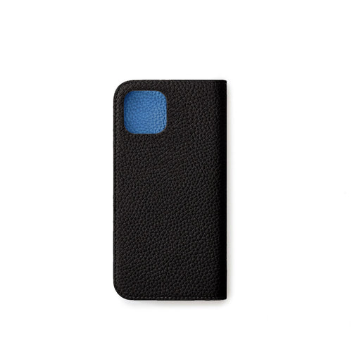 SKU: BODT14-BKBL - 仕様:本革手帳型スマホケース、カードポケット(横×3、縦×2)