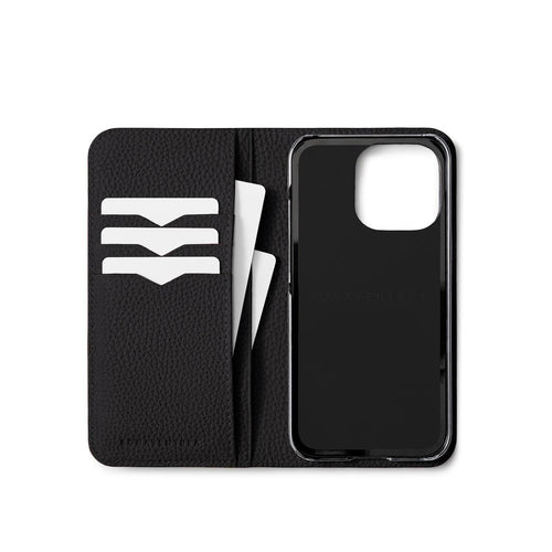 SKU: BODT15P-BK - 仕様:本革手帳型スマホケース、カードポケット(横×3、縦×2)