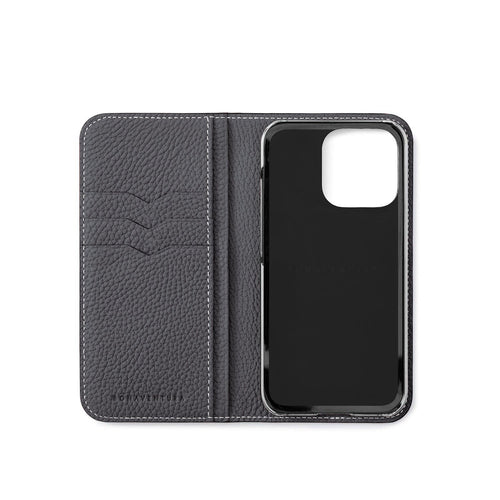 SKU: BODT15P-CG - 仕様:本革手帳型スマホケース、カードポケット(横×3、縦×2)