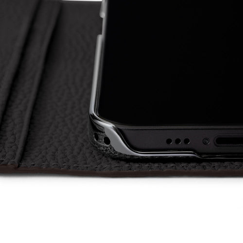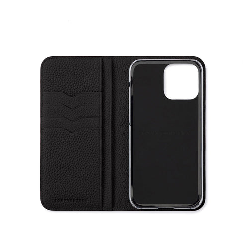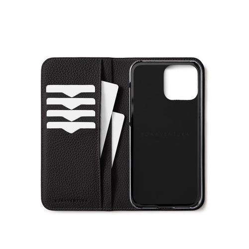 SKU: BODTR15PM-BK - 仕様:本革手帳型スマホケース、カードポケット(横×4、縦×2)