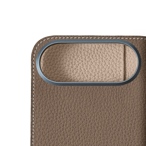 - 美しいレザーを引き立てるミニマルなデザインのiPhoneケース。