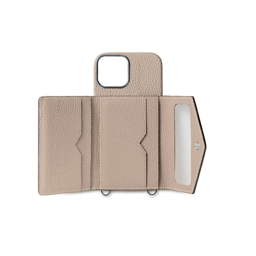 - 別売りのエンベロープポーチ、ミラーポーチ専用のスナップ付き背面型iPhoneケース。
