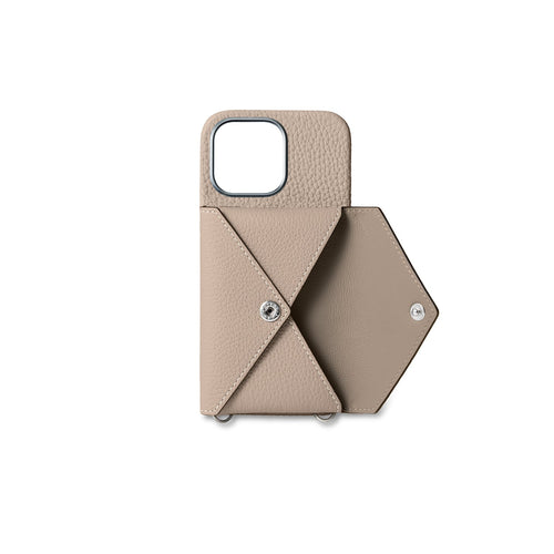 - 別売りのエンベロープポーチ、ミラーポーチ専用のスナップ付き背面型iPhoneケース。