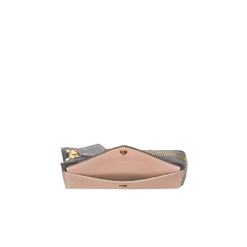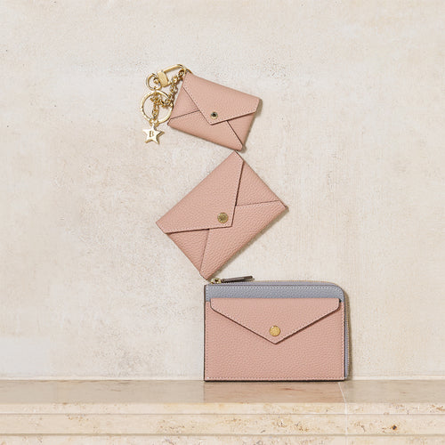 - フロントのエンベロープポケットがデザインのポイントながら、小銭や鍵も入り機能性と両立。