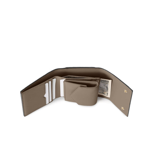 • ヨーロッパ最高級「シュリンクレザー」を使用したフラップ付き3つ折りウォレット。