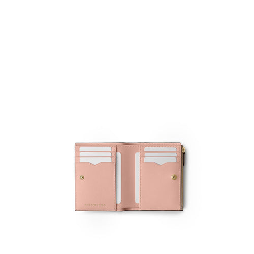 • 二つ折りでコンパクトながら、カード・お札・コインをしっかりと収納できる万能アイテム。