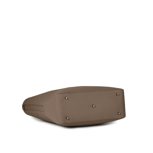 - 張りのあるレザーと5点の底鋲によりしっかり自立し、重い荷物を入れても型崩れしにくい設計。