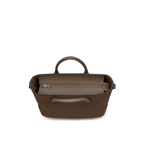 - 上質なシュリンクレザーを片面に一枚贅沢に使用した、高級感あふれるトートバッグ。