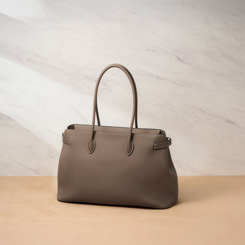 - クラフツマンシップあってこそ仕上がる、ベルトディテールと立体フォルムが、上品でモダンな印象を演出。