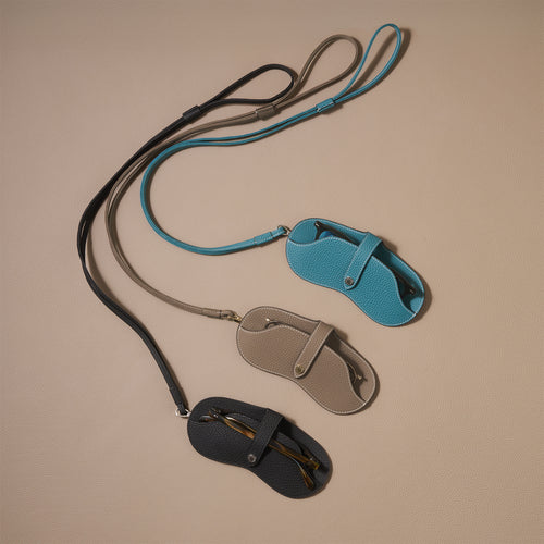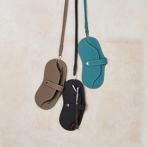 - シンプルかつ上品なシュリンクレザー仕様のメガネケース。