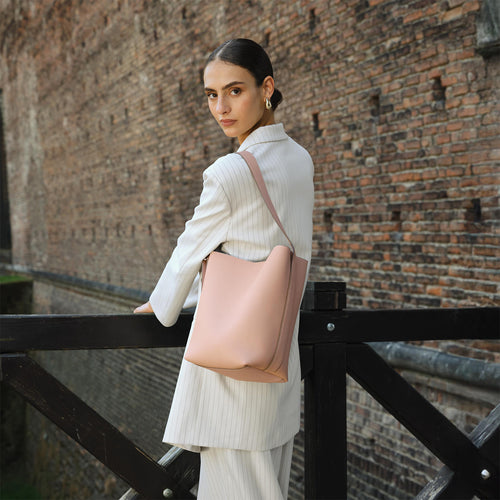 - 아름답고 매끄러운 것으로 매우 희귀 한 한 장 가죽을 사치스럽게 사용한 가벼움과 고급을 겸비한 버킷 백.