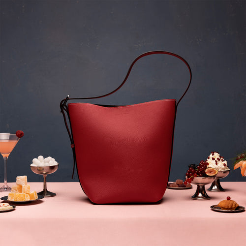 - 아름답고 매끄러운 것으로 매우 희귀 한 한 장 가죽을 사치스럽게 사용한 가벼움과 고급을 겸비한 버킷 백.