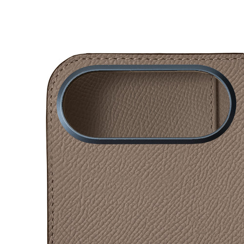 - 美しいレザーを引き立てるミニマルなデザインのiPhoneケース。