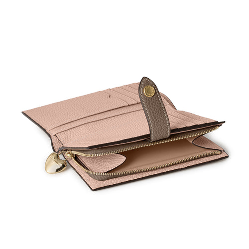 - ヨーロッパ最高級「シュリンクレザー」を使用したベルトスナップ付き2つ折りウォレット。