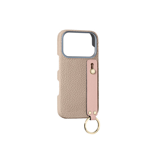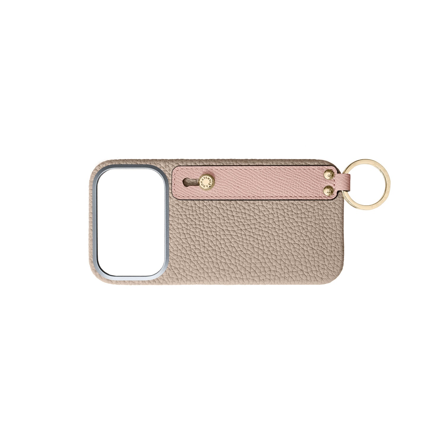 (iPhone 17 Pro) ハンドル付き バックカバーケース シュリンクレザー (ゴールド)
