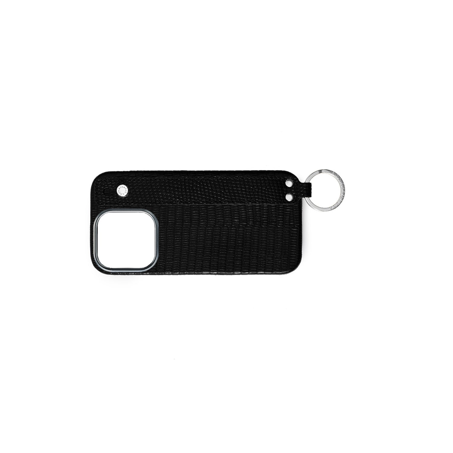(iPhone 15 Pro) ハンドル付き バックカバーケース リザードエンボスレザー