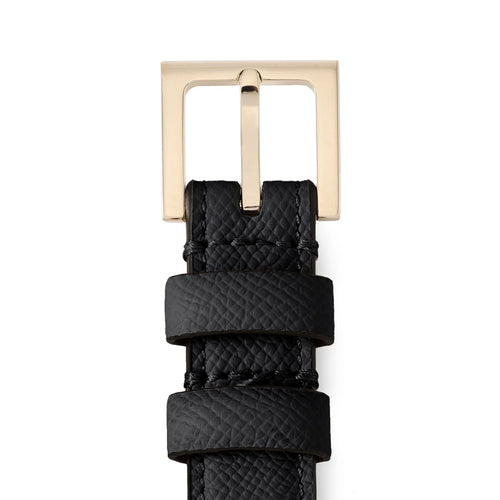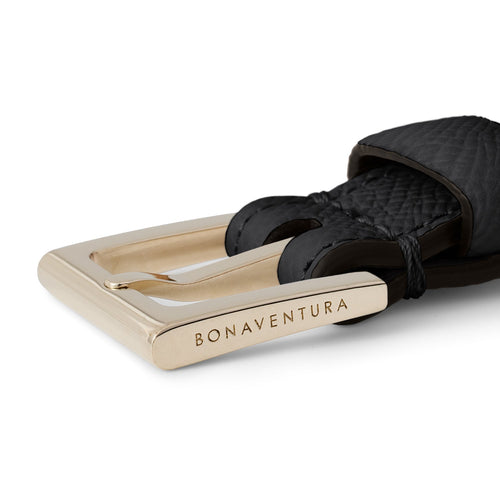 - イタリアで一つ一つ丁寧に仕立て上げられたスクエアバックルはフォーマルな印象でありながら、サイドを雫型の曲線に仕上げたエレガントなデザイン。