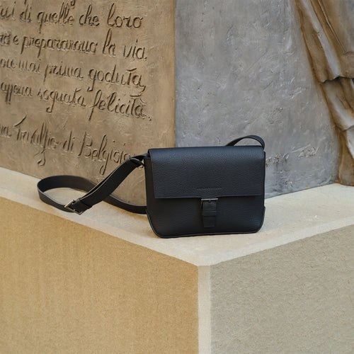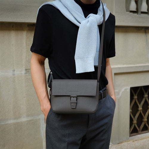 • 上質なシュリンクレザーを贅沢に使用した、バックルディテールがアクセントとして映えるクロスボディバッグ。
