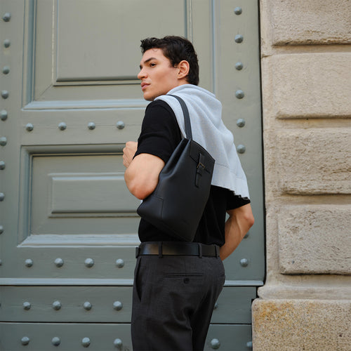 歴史を物語る石畳の路地と、クラシックな建築が連なるイタリアの街並み。ドゥオーモの丸屋根、路地裏に差し込む光、石造りの連なる柔らかなアーチ、歴史を包み込む中庭の曲線。そんな風景からインスピレーションを受けた重厚感のあるフォルムが、ミニマルでファンクショナルなバッグにさりげない輝きを添えます。