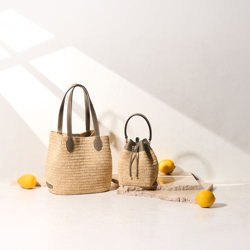 夏の光を編み込んだかのような、軽やかなラフィア素材のバッグ。