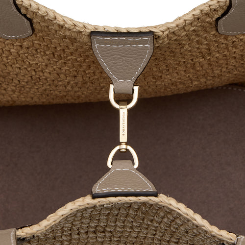 • 素材:外・内側: ラフィア / 底:スエード調ファブリック / ハンドル,絞り部分,ナスカン部分:シュリンクレザー