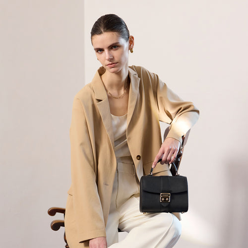 - โครงกระเป๋ากว้างและมั่นคง ช่วยให้กระเป๋าตั้งได้ด้วยตัวเอง โดยยังคงรูปทรงสวยงามแม้จะวางลง