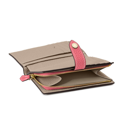 - กระเป๋าสตางค์พับสองทบพร้อมเข็มขัดรัดทำจากหนังหดที่ดีที่สุดของยุโรป