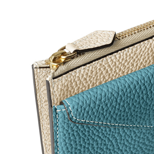 - 小銭や鍵も収納でき、マチ付きのL字ジップで日本紙幣を二つ折りで収納可能。膨らみにくく、スマートな使い心地を実現。