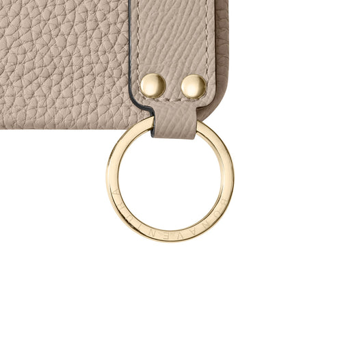 - ハンドルのリングは、別売りのショルダーストラップで斜め掛けができるほか、鍵やストラップ、キーチャームなどを取り付け、マルチに使用可能。